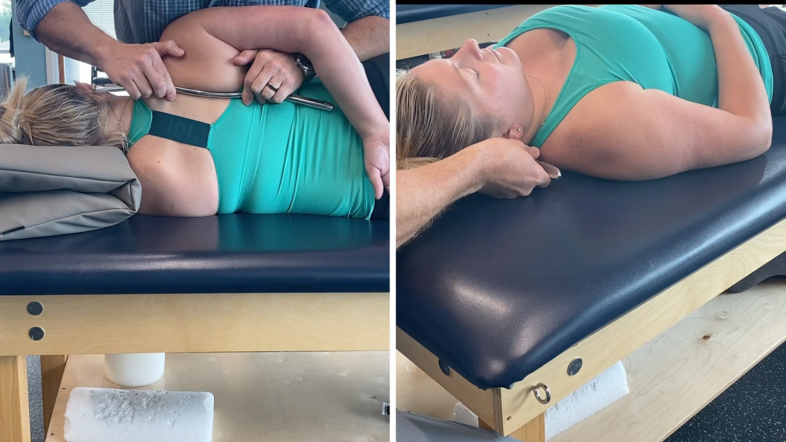 This video focuses on the most widely-used modality across all our clinics and clinicians: instrument-assisted soft tissue mobilization (IASTM). IASTM is a manual technique that uses steel instruments to diagnose and identify an array of acute and chronic soft tissue injuries and dysfunctions. The history of IASTM dates back 2,000 years ago to traditional Chinese medicine and a technique called Gua Sha, which literally means “scraping.” Practitioners would take jade or stones and scrape the person’s skin until it became red or even bruised. This was intended to help with muscle injuries, increase blood flow to the areas, and help with cell regeneration, growth and repair.